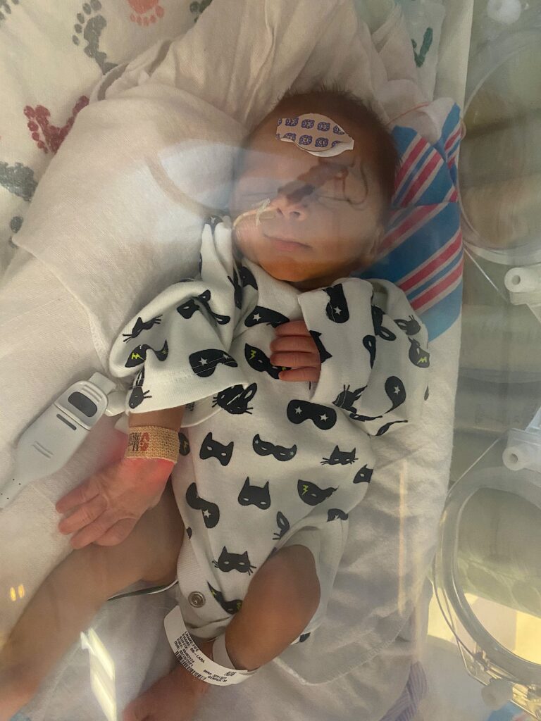 We learned that Jaxon is in good shape at the step down unit. He lost a little weight but his health is going in the right direction. He is a little longer than 41.5 cm or 16.3 inches and is now officially off jaundice treatment. He is taking his bottles and gaining energy each day. These are critical milestones in his development.