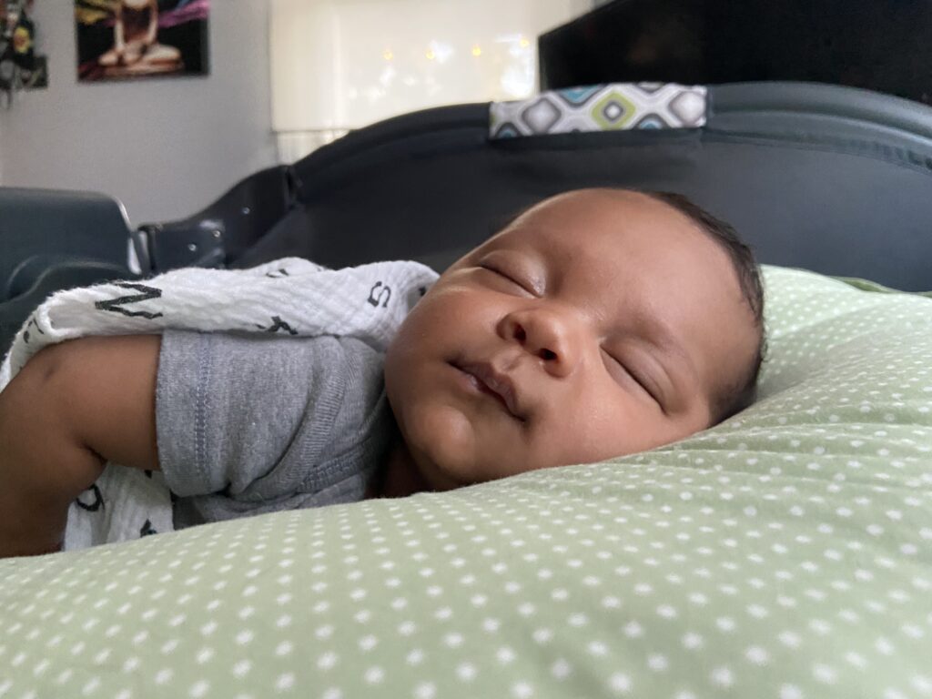 As most of you told us, we has reached his normalcy point where while he doesn’t sleep through the night, his nightly sleep pattern is more like a typical baby. This typically means maniacal rage eating twice between the hours of 11:00p and 6:00a, pooping once or twice, and most importantly, sleeping in between. Lara and I can now sleep when he sleeps, something people said we should do but somehow could not be done initially. In those early dark times of month two, the only times he slept at night was in our arms. Now, he fusses a bit but is genuinely asleep most of the night. It’s not always a quiet sleep as he occasionally gurgles and snorts, but it’s much, much better now. We no longer are considering the purchase of exotic baby bassinets that cost about the same as a decent used car. He currently sleeps in his exotic baby bean bag bed, which is totally different. Jax might be ready for a traditional flat mattress soon, which would be a significant turning point in our sleep journey.